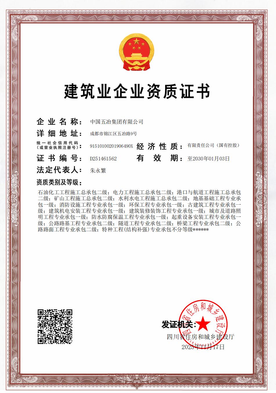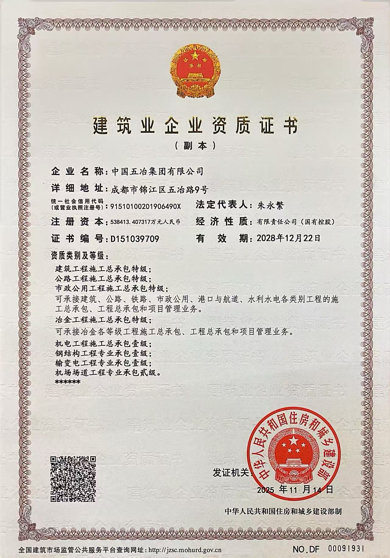 建筑业企业资质证书(建筑、市政、公路、冶金特级)