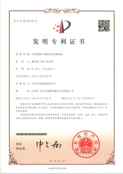 大型混凝土块转运用吊装结构 ZL2017109116473