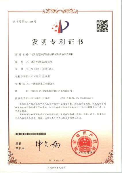 可实现无脚手架搭设模板架的液压升降机 ZL2016106031426