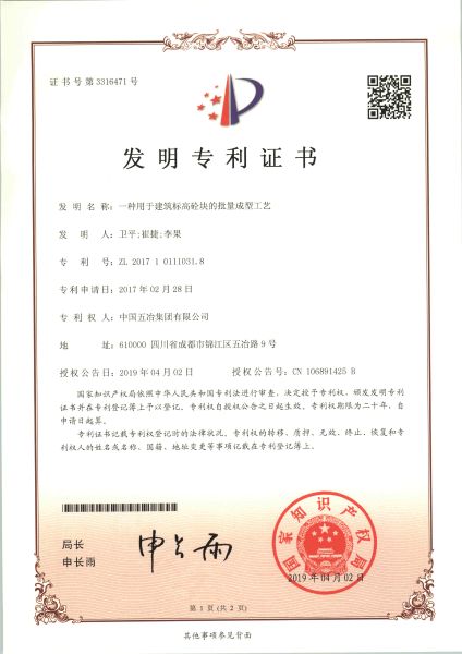 一种用于建筑标高砼块的批量成型工艺 ZL2017101110318
