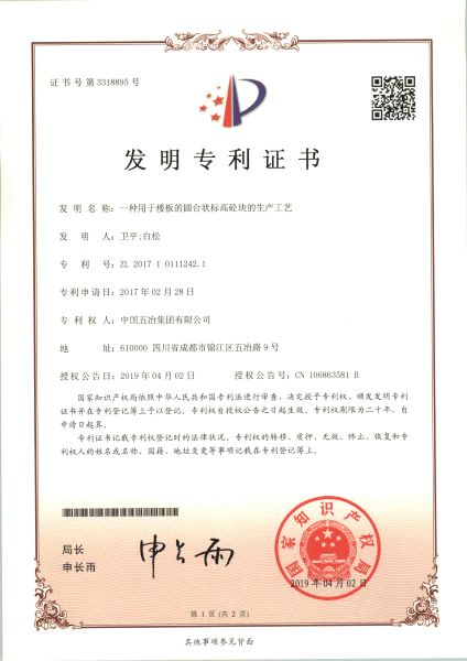 一种用于楼板的圆台状标高砼块的生产工艺 ZL2017101112421