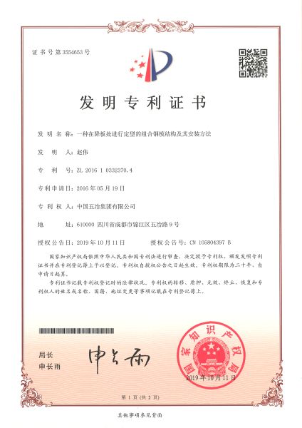 一种在降板处进行定型的组合钢模结构及其安装方法 ZL2016103323704