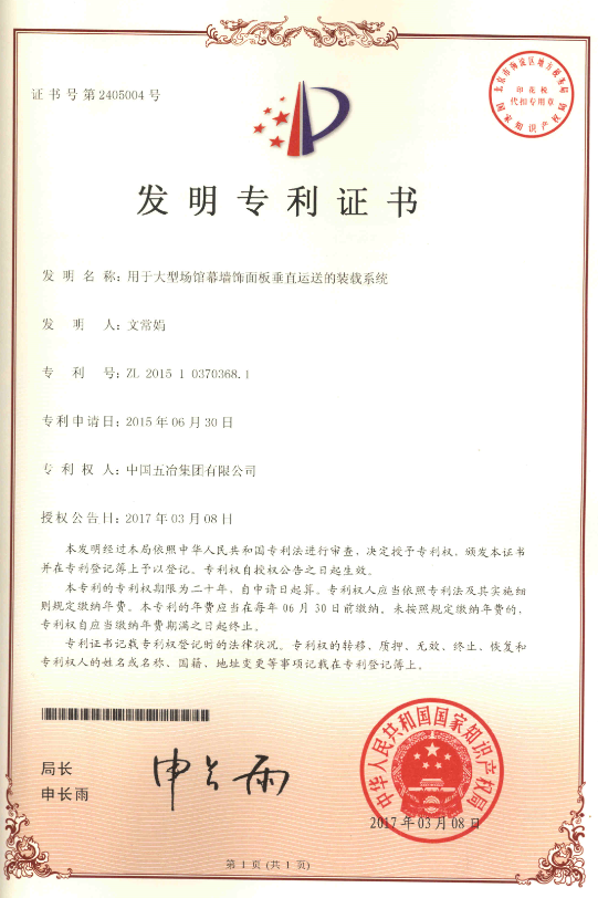ÓÃÓÚ´óÐͳ¡¹ÝĻǽÊÎÃæ°å´¹Ö±ÔËË͵Ä×°ÔØÏµÍ³ ZL2015103703681