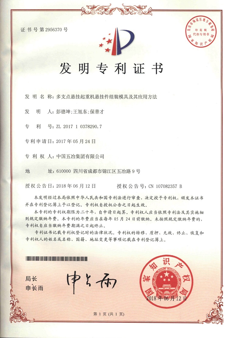 ¶àÖ§µãÐü¹ÒÆðÖØ»úÐü¹Ò¼þ×é×°Ä£¾ß¼°ÆäÓ¦Ó÷½·¨ ZL 201710378290.7