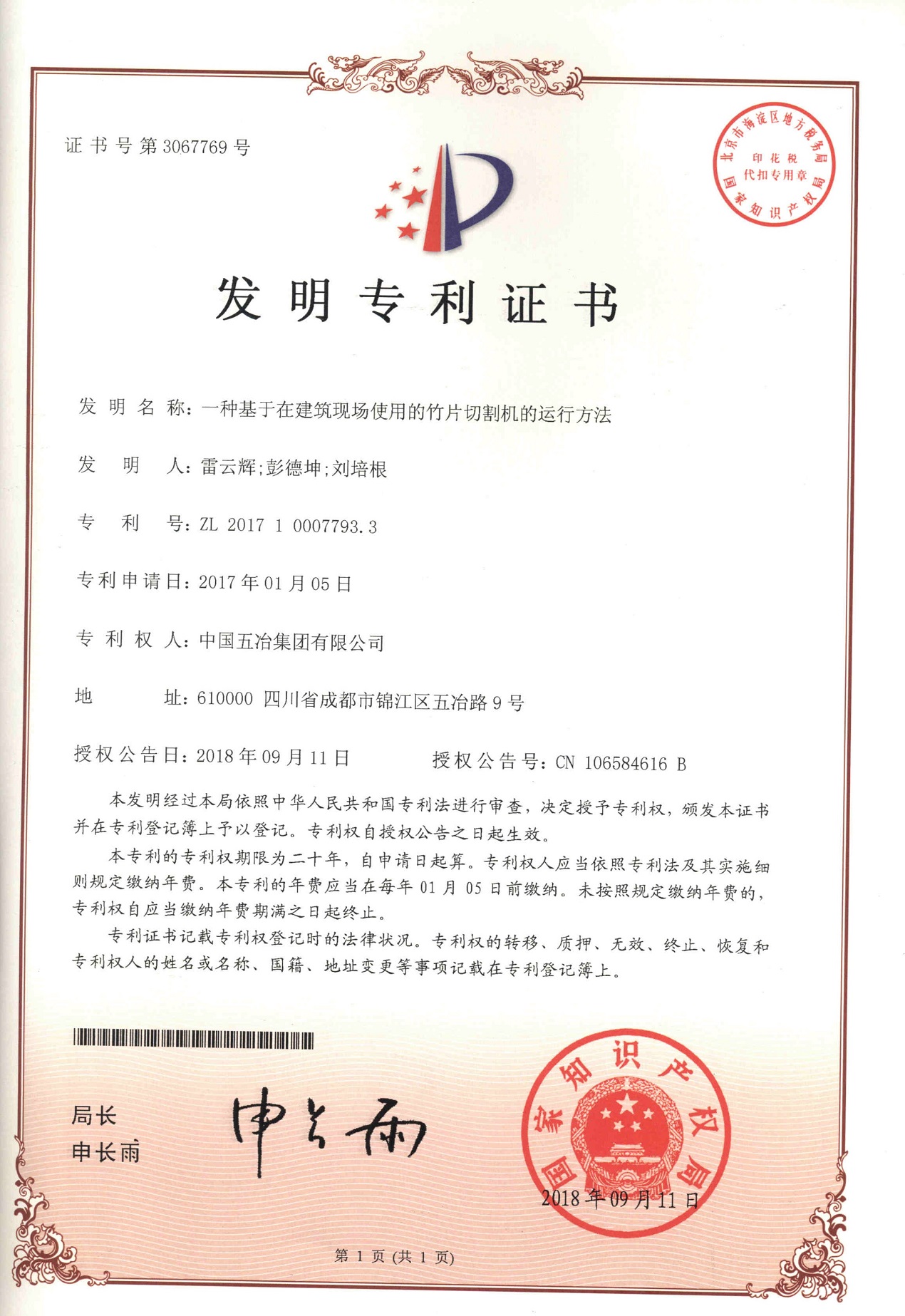 Ò»ÖÖ»ùÓÚÔÚ½¨ÖþÏÖ³¡Ê¹ÓõÄÖñƬÇиî»úµÄÔËÐз½·¨ ZL 201710007793.3
