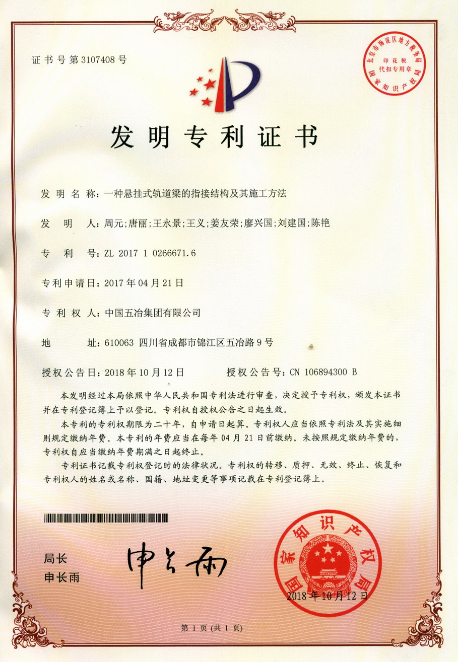 Ò»ÖÖÐü¹Òʽ¹ìµÀÁºµÄÖ¸½Ó½á¹¹¼°ÆäÊ©¹¤·½·¨ ZL 201710266671.6