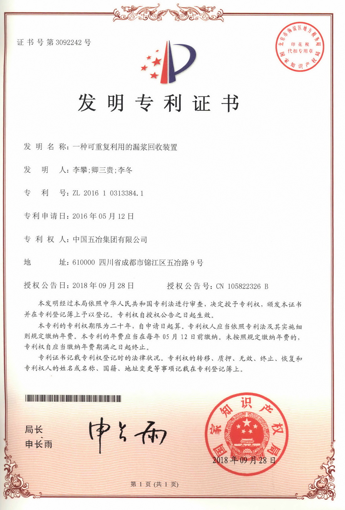 Ò»ÖÖ¿ÉÖØ¸´ÀûÓõÄ©½¬»ØÊÕ×°Öà ZL 201610313384.1