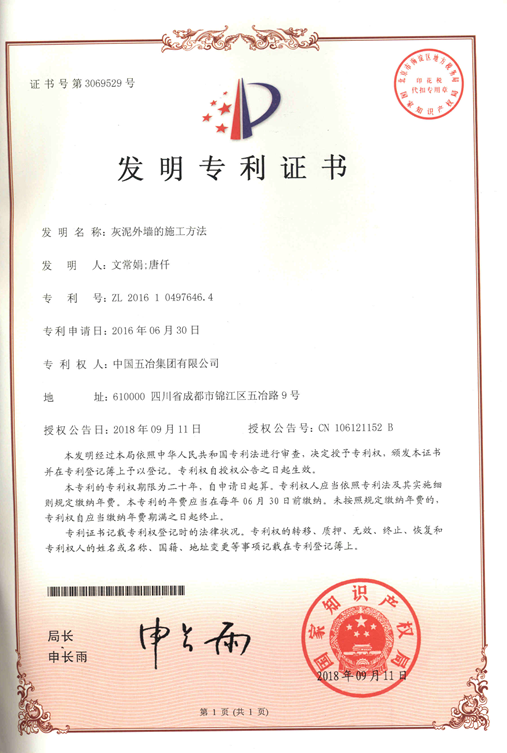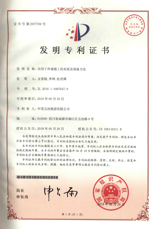 Ó¦ÓÃÓëÍâǽʩ¹¤µÄ»ÒÄà¼°ÖÆ±¸·½·¨ ZL201610497647.9