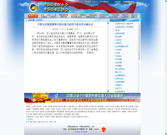中国企业联合网报道:中国今年会官网集团董事长程并强当选四川省法学会副会长
