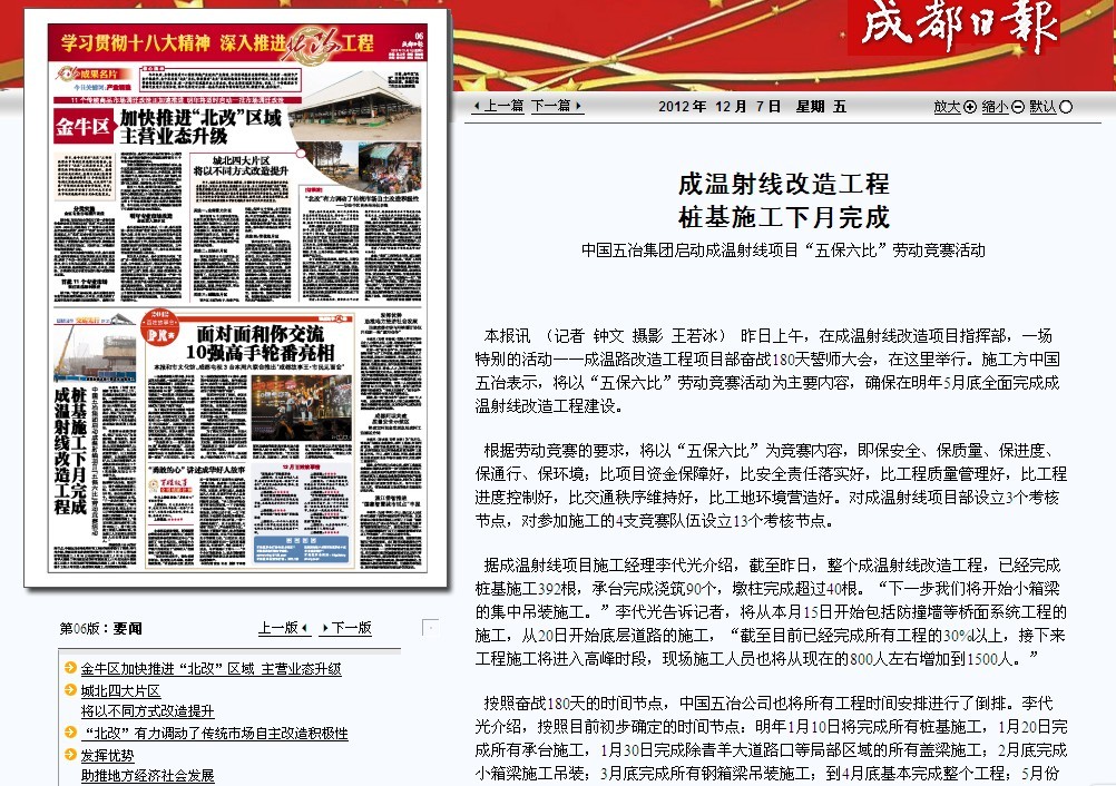 成都日报报道:成温射线改造工程桩基施工下月完成