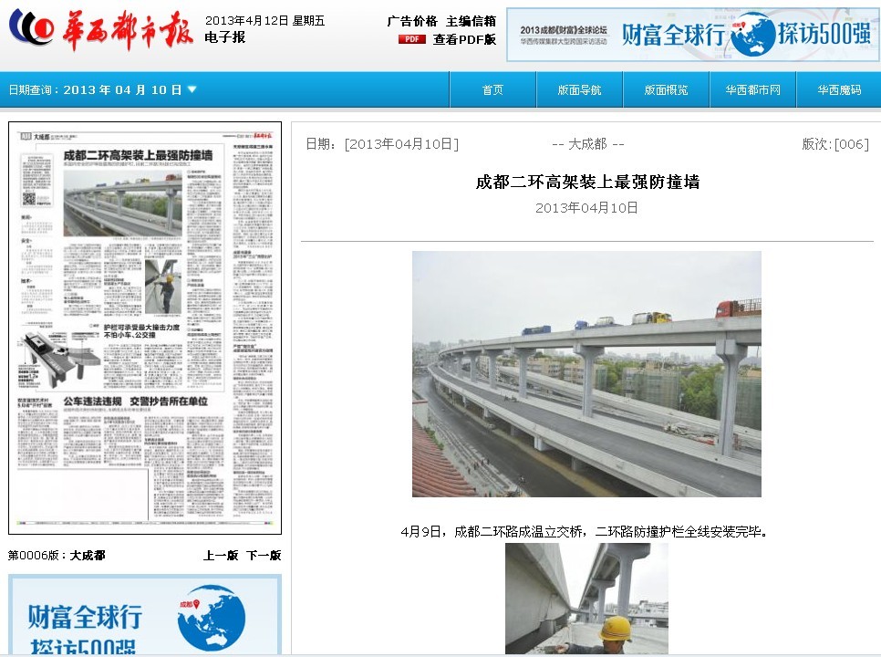 上一篇:天府早报报道:二环路首段高架防撞墙亮相