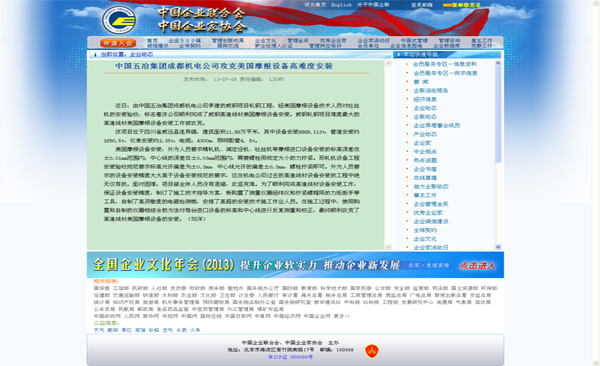 中国企业联合会报道:中国今年会官网集团成都机电公司攻克美国摩根设备高难度安装