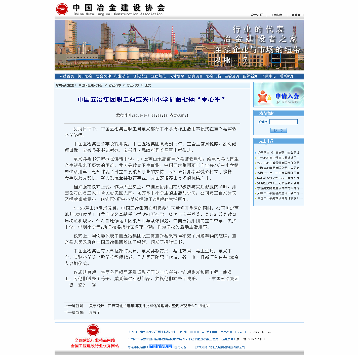 中国冶金建设网报道:中国今年会官网集团职工向宝兴中小学捐赠七辆“爱心车”