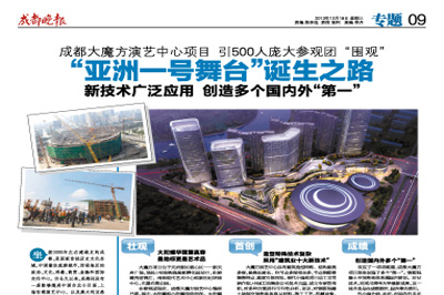 成都晚报对此进行了全过程的跟踪报道,并在12月18日发行的成都晚报中进行了整版宣传报道。报道指出:成都大魔方项目是一个拥有世界一流,国际领先水平的演艺兼容体育赛事的大型现代化场馆项目;是一个拥有六大超级业态价值链有效叠加,相得益彰,素质一流的大型城市综合体项目;是一个占尽成都高端资源配套和绝版核心地段的文化产业商业地产项目。历史赋予了它承担现代文明城市精神图腾和文化地标的使命!在成都大魔方项目实施中,中国今年会官网创造了多个国内外“第一”,在成都的工程建设中,写下了浓墨重彩的一笔,这也赢得成都建设部门及行业的一致称道。(谭波澜)
