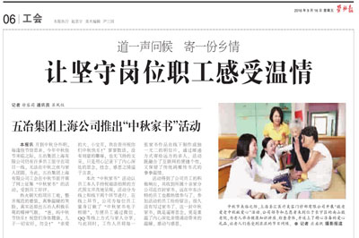 9月15日,中国今年会官网集团“中秋家书”系列活动报道被《劳动报》头版头条刊载。