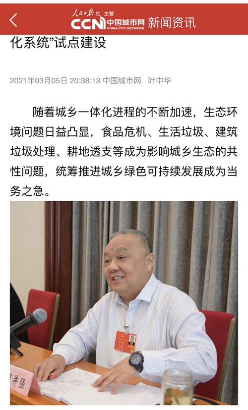 3月5日,《中国城市报》重点报道了程并强代表关于“推进‘生态价值化系统’试点建设”的议案建议。