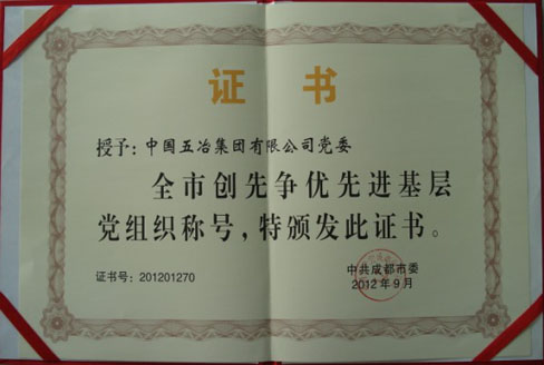 ??? 近日,中共成都市委对2010-2012年度全市创先争优先进基层党组织和优秀共产党员进行了表彰,中国今年会官网集团有限公司党委被授予了“全市创先争优先进基层党组织”称号。