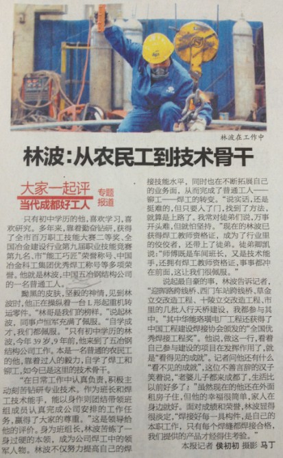 4ÔÂ15ÈÕ£¬³É¶¼ÊÐ×ܹ¤»áÁªºÏ³É¶¼µçÊǪ́¡¢³É¶¼¹ã²¥µç̨¡¢³É¶¼ÈÕ±¨¡¢³É¶¼É̱¨µÈ³É¶¼Êжà¼ÒÐÂÎÅýÌå¶Ôµ±´ú³É¶¼ºÃ¹¤È˺òÑ¡ÈË¡ª¡ª¸Ö¹¹·Ö¹«Ë¾Èý³µ¼ä°à³¤¡¢º¸¹¤ÁÖ²¨½øÐÐÁ˲ɷã¬Â¼ÖÆÁË¡°×ß»ù²ã¡ª¡ªÑ°·Ãµ±´ú³É¶¼ºÃ¹¤ÈË¡±½ÚÄ¿£¬²¢Ôڳɶ¼µçÊǪ́ÐÂÎÅ×ÛºÏÆµµÀ£¨CDTV¡ª1£©¡¶ÐÂÎÅ18µã¡·À¸Ä¿ÖнøÐÐÐû´«±¨µÀ¡£³É¶¼É̱¨¡¢³É¶¼ÈÕ±¨µÈýÌå½øÐÐÁËרÌⱨµÀ¡£