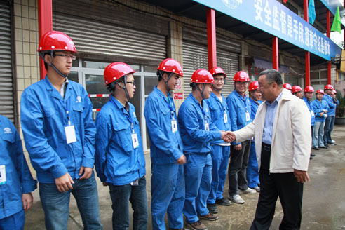 每到一处,集团公司领导与员工们亲切握手,问好致谢。路桥公司领导袁弘毅、刘铁坚和项目部经理郁祖平分别向集团公司领导汇报了项目的基本概况、施工难点、吊装方案、重大节点及完成时间。交流过程中,公司董事长、党委书记程并强对项目的文明施工和工程进度表示满意。对成温路改造工程的后期建设提出了更高要求。他说:成都市缓堵保畅“两快两射两环”成温路段项目是公司当前的一号工程,是四川省、成都市政府极其关注的重要民生工程,社会影响巨大,对公司拓展市政工程市场具有重要的现实意义,参建单位一定要克服困难,精心组织,注意安全,确保履约。向成都市民献上一份优质的答卷。