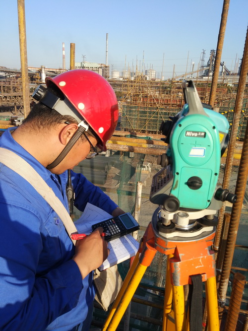 宝钢工程公司 宝钢一二烧结整合大修项目测量员进行现场螺栓定位复测