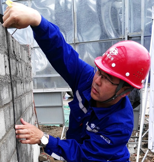 陕西公司-达州蔡坪安全员在检查脚手架扭矩