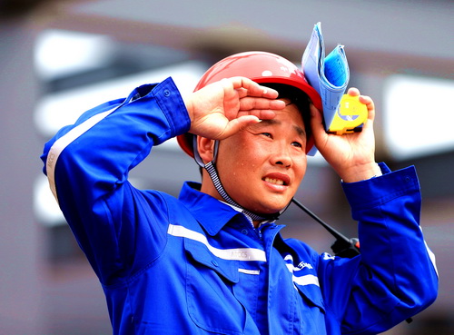 一公司成都青白江欧洲产业园标准厂房项目现场满头是汗的管理人员