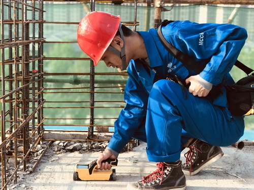 华北公司荣盛项目人员对楼板钢筋间距保护层检查