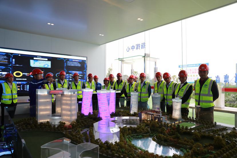 在中房海滨湾EPC项目,潺潺的喷泉声与干净整洁的项目部相映成趣。中冶北方副总经理逄红刚说道:“印象最深的就是这个工地的绿色施工、文明施工,这对企业树立品牌、市场开发有很大帮助。”中冶南方副总经理郑剑辉表示:“海滨湾项目不仅市场定位高端,现场工作更高端,亮眼的智慧工地管理中心对项目总承包的推广工作很有帮助。”在成都大魔方项目,上大下小陀螺造型令实训小组赞叹不已,中冶赛迪股份副总经理李志就如何加强对劳务人员、分包人员的安全培训和保护等问题与项目团队进行了深入沟通,互相吸取经验。