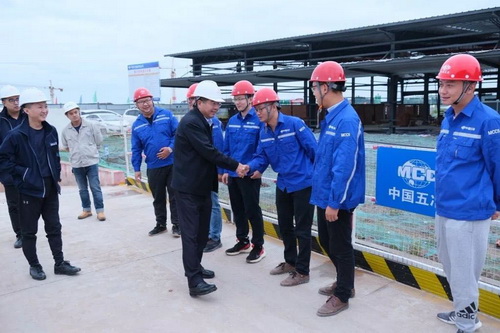 9月19日,在国庆来临之际,四川航空集团董事长李海鹰带队莅临今年会官网一分公司承建的成都天府国际机场川航航食与货运工程项目,开展“防风险、保安全、迎大庆”专项安全检查,慰问并指导工作。川航股份公司行政总监张再斌、副总经济师王显强,企业管理部、天府分公司筹备组及基础建设联合指挥部干部参加,该项目管理人员陪同。