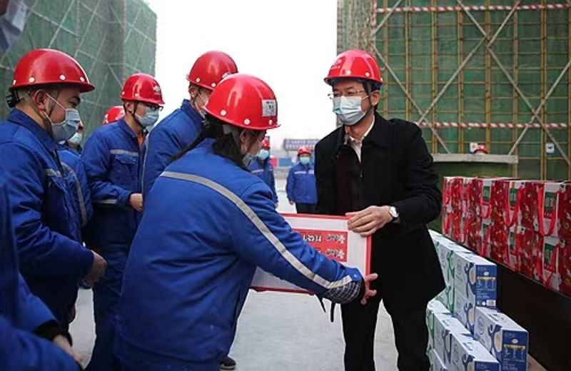 1月1日新年伊始,集团公司党委书记、董事长朱永繁一行前往项目现场开展带班检查并慰问一线员工,集团公司党委副书记、工会主席周悦静,副总经理谭兴山、张刚,董事会秘书赵云,工程部、安环部、技术部、质量部、党群部、办公室及部分二级单位负责人等参加活动。