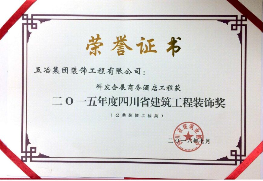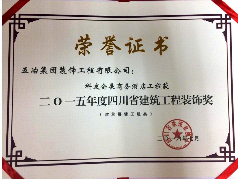 科发会展商务酒店工程-2015年四川省建筑工程装饰奖(装饰类)