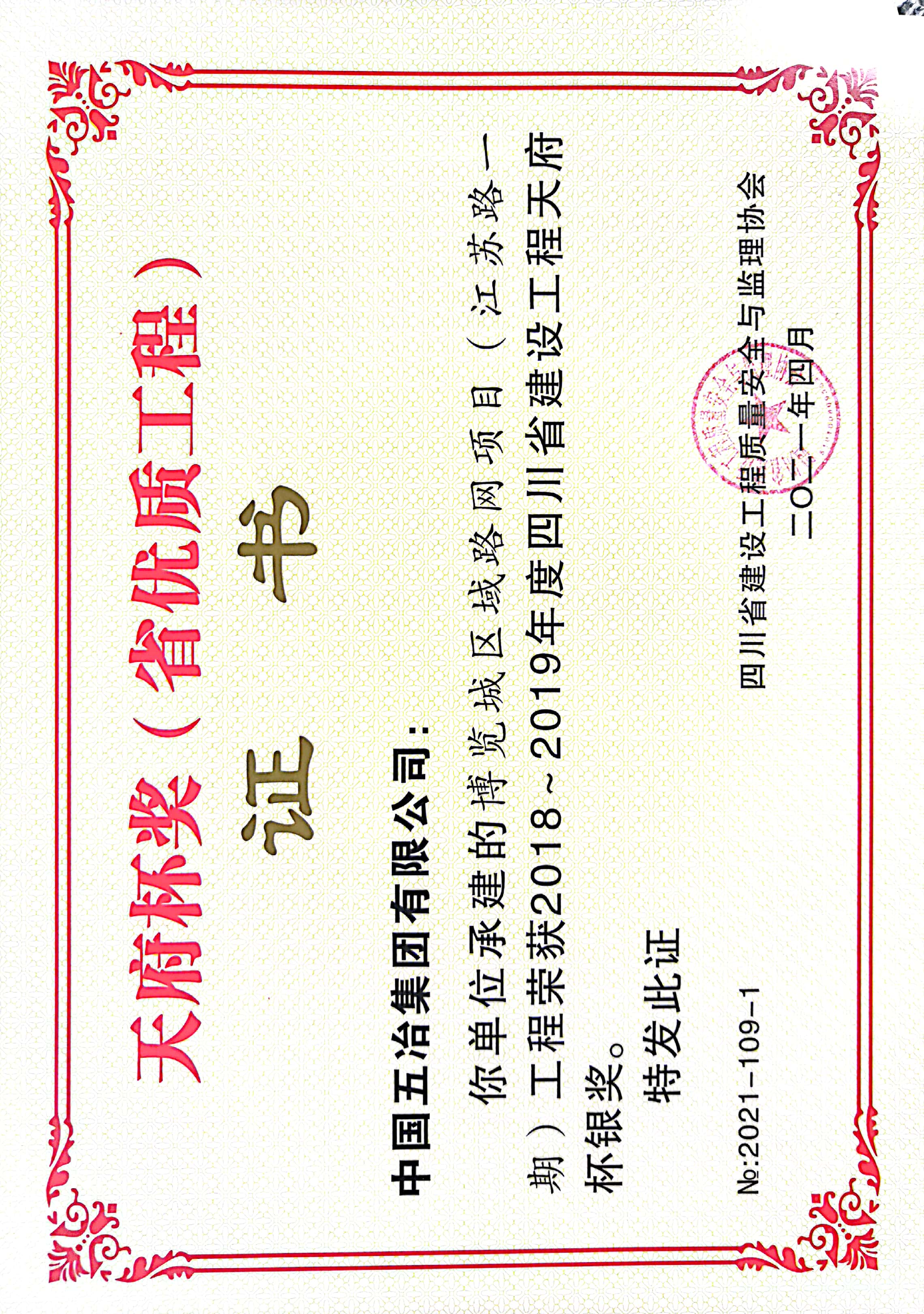 博览城区域路网项目(江苏路一期)-2018~2019年度四川省建设工程天府杯银奖