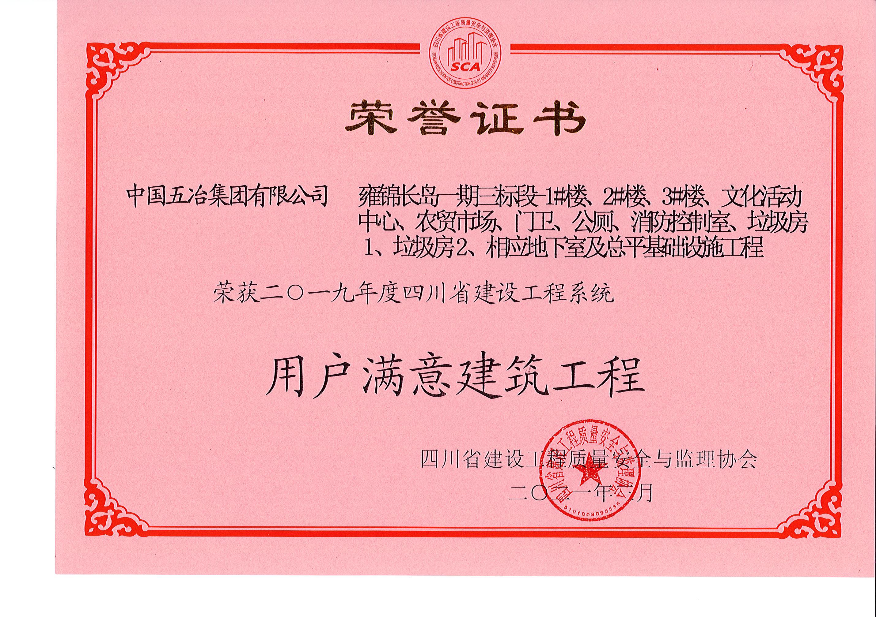 雍锦长岛一期三标段1#、2#、3#楼及相应地下室—2019年四川省建设工程系统用户满意工程