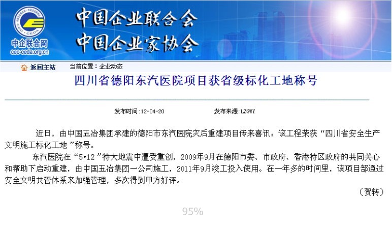 中国企业联合网报道:四川省德阳东汽医院项目获省级标化工地称号