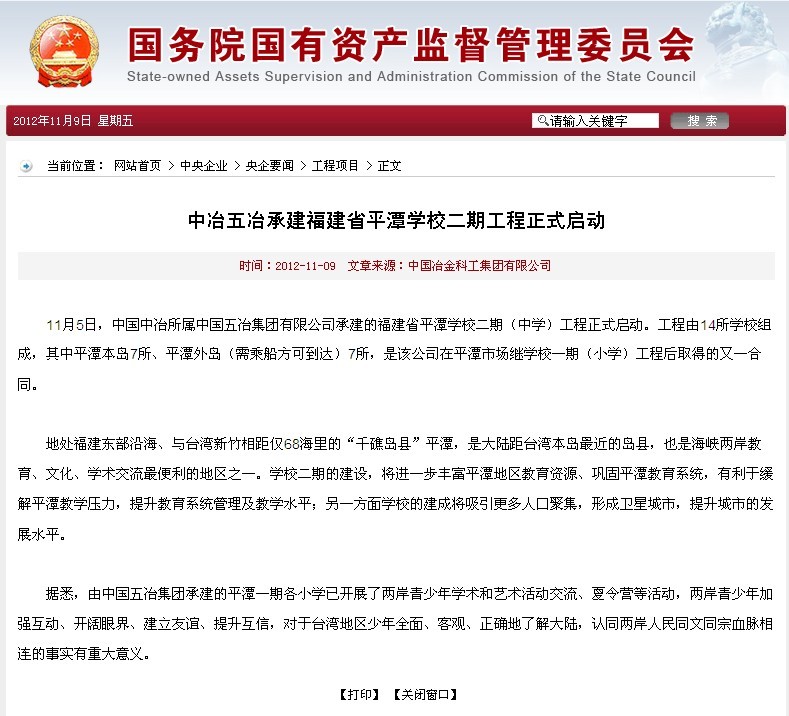 国资委报道:中冶今年会官网承建福建省平潭学校二期工程正式启动