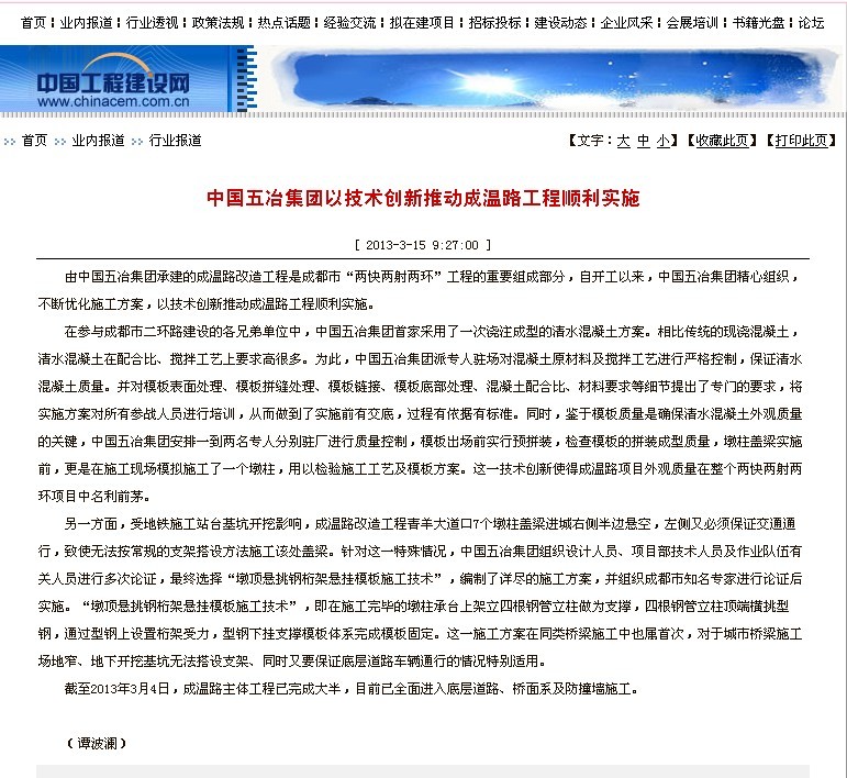 中国工程建设网报道:中国今年会官网集团以技术创新推动成温路工程顺利实施
