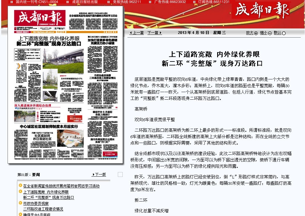上一篇:华西都市报报道:成都二环高架装上最强防撞墙