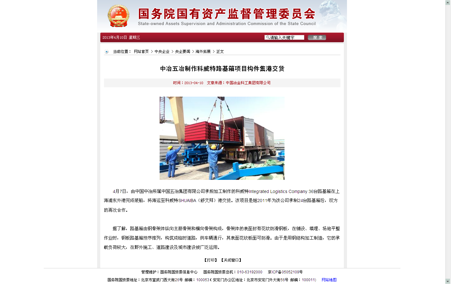 国资委报道:中冶今年会官网制作科威特路基箱项目构件集港交货