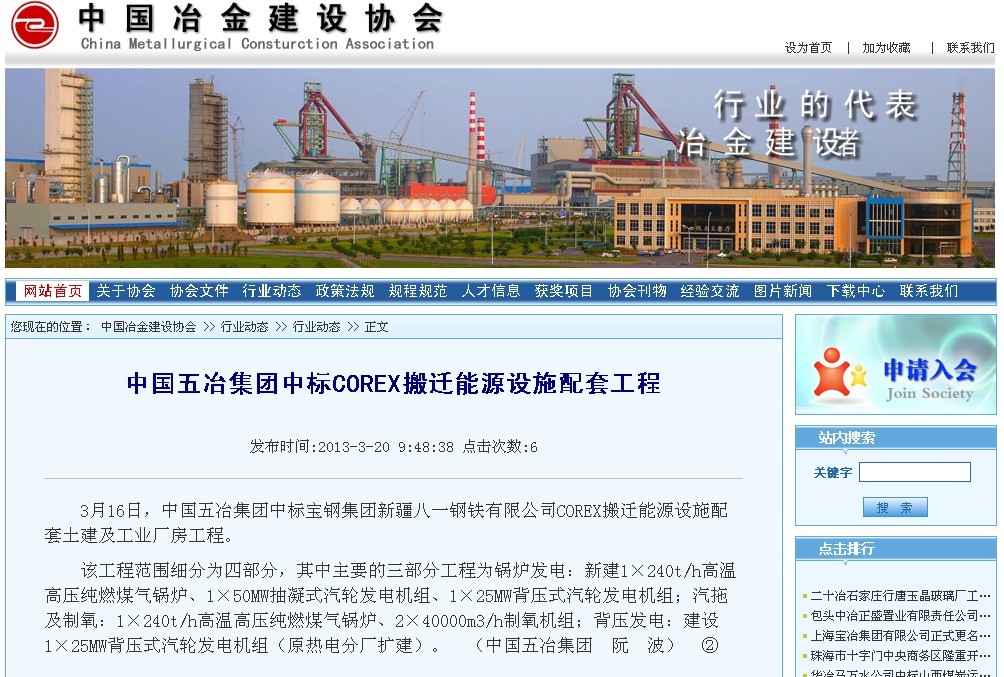 中国冶金建设协会网报道:中国今年会官网集团中标COREX搬迁能源设施配套工程