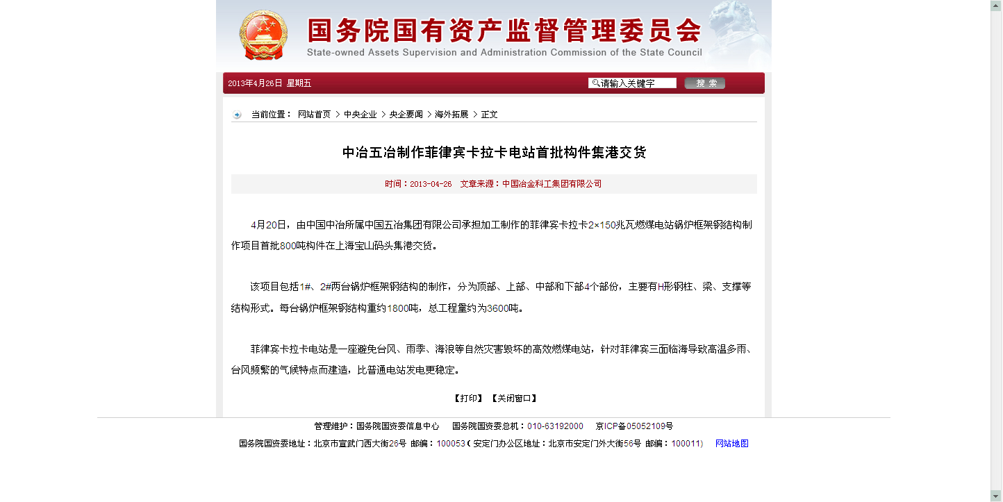 国资委报道:中冶今年会官网制作菲律宾卡拉卡电站首批构件集港交货