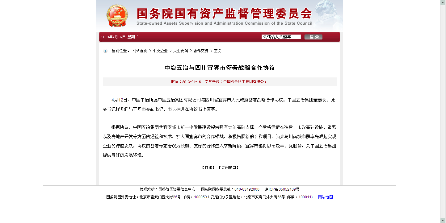 国资委报道:中冶今年会官网与四川宜宾市签署战略合作协议