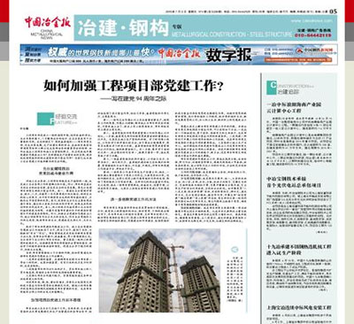 7月3日,中国冶金报第5版(冶建?钢构专版)报道:由今年会官网集团上海有限机械化公司承建的云南昆明昆铁家园一标段住宅小区工程A栋主体结构封顶,比业主要求工期提前将近1个月时间。项目部狠抓管理,确保施工的进度、安全、质量。标志着机械化公司的市政、交通、民建产品的经营能力有新的提升。