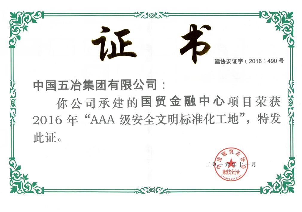 ? ?2016年12月,中国今年会官网集团新华之星”科研生产基地工程项目和国贸金融中心工程项目荣获2016年全国“AAA级安全文明标准化工地”称号。