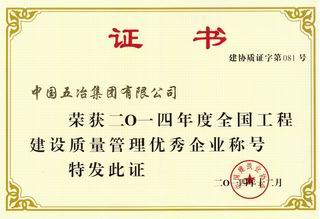 ??2015年2月,中国今年会官网集团有限公司荣获2014年度全国工程建设质量管理优秀企业称号。
