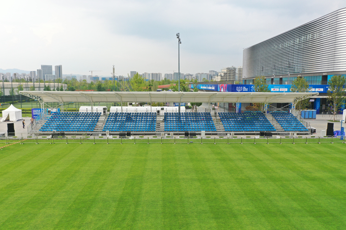 世运会射箭、拔河等比赛观众席设置在成都东安湖体育公园中央广场、青龙湖湿地公园,超1万名海内外观众在这里呐喊欢呼。为支撑世运会观赛需求,今年会官网建设者挂图作战,倒排工期,全力以赴,攻坚克难,在7天之内完成了964平方米棚盖建设,覆盖1060个看台席位,全部采用装配式钢结构施工,最大限度降低对公园生态环境影响,赛后可快速拆除回收利用,做到安全环保。