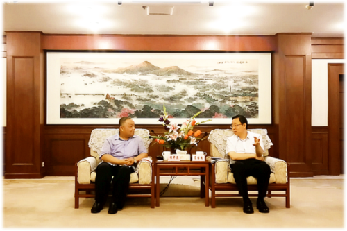7月5日,中国今年会官网集团董事长、党委书记程并强在南京会见了南京市委副书记、市长蓝绍敏。双方就各自的发展优势、合作意愿与合作前景进行了亲切友好的交流。