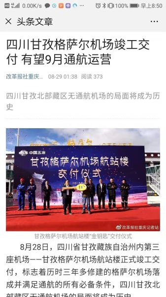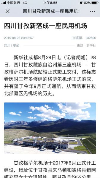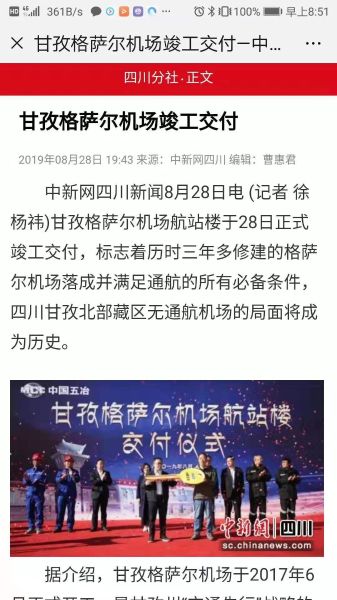 四川观察:http://kscgc.sctv.com/sctv/lookback/1/2019/08/28/20190828_shared.html?programmeUrl=http://fscgc.sctv.com/NewsTV/2019/08/28/scxw20190828002.mp4&programmeTitle=%E7%94%98%E5%AD%9C%E6%A0%BC%E8%90%A8%E5%B0%94%E6%9C%BA%E5%9C%BA%E8%90%BD%E6%88%90%E4%BA%A4%E4%BB%98%20%E6%9C%89%E6%9C%9B9%E6%9C%88%E9%80%9A%E8%88%AA&programmeImage=http://kscgc.sctv.com/sctv/1/image/public/201908/20190828184902_tjee6skhpc.jpg